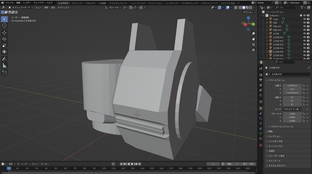 ikuです。今は零号機のジオラマを作成中ですが、それと並行して別のジオラマの作成を考えています。その計画としてBlenderでモデル作りをしています。そのモデルが下の写真!