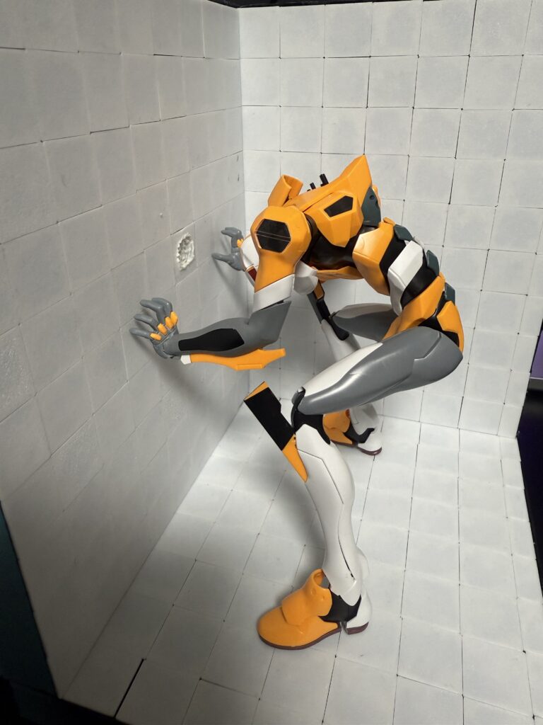 ぐちゃっとなっているプレートは零号機が頭をぶつけて壊したことを再現しているつもりです。